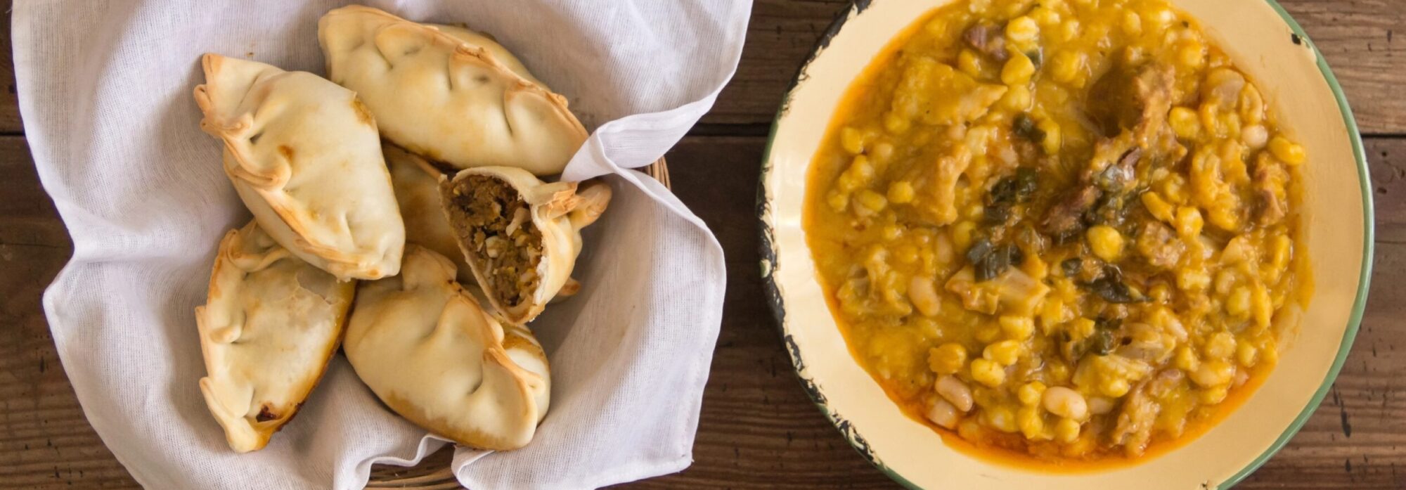 MENÚ CON LOCRO, EMPANADAS Y PASTELITOS EN PUCHERO