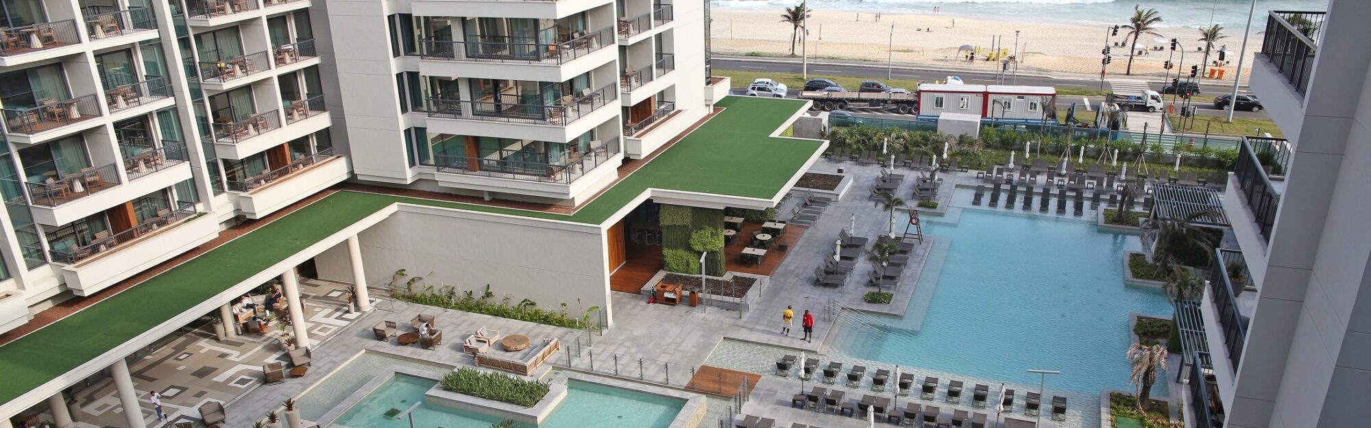 De un lado, el mar azul y las arenas blancas de la playa de Barra da Tijuca. Del otro, la Laguna de Marapendi con su vegetación nativa. Este escenario único es la dirección del Grand Hyatt Río de Janeiro. Con el concepto de resort urbano, el hotel de lujo sigue los estándares globales de excelencia de la marca Grand Hyatt y ofrece una estructura completa para recibir eventos corporativos y reuniones de negocios, además de servicios exclusivos para quienes buscan ocio y privacidad en la «Ciudad Maravillosa».