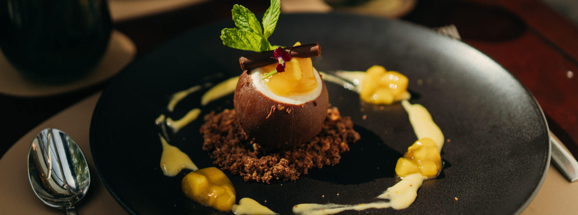El recorrido continúa con el buñuelo de kale con queso de cabra y frutos rojos especiados, y clásicos reinventados como el lomo argentino con gramajo y brotes, o la trucha salmonada acompañada de risotto negro y emulsión de ajo asado. Para cerrar, el menú de St. Regis ofrece una delicada variedad de dulces como el Coco Bea, una esfera de coco, maracuyá y mango flambeado que deja una última nota fresca y luminosa, un homenaje a la nueva estación. “La experiencia no termina en la cocina: trabajamos junto al equipo de salón para que los camareros prueben cada plato y puedan recomendarlo con conocimiento. Es una forma de garantizar un servicio más cercano, auténtico y coherente con la propuesta gastronómica”, añade Gómez.