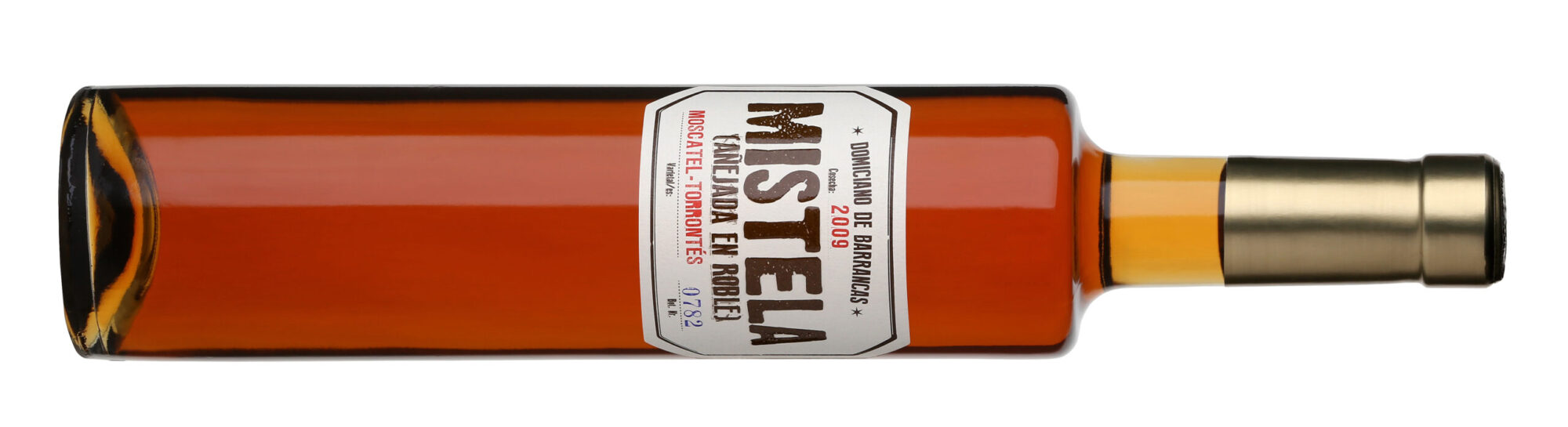 El Mistela se elabora a partir de una selección de uvas Moscatel y Torrontés que una vez cortadas con alcohol vínico son criadas por 4 años en barricas de roble francés para lograr la complejidad aromática y el color caramelo que lo caracterizan.