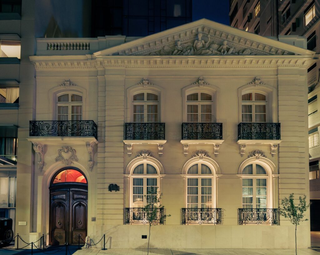 La mansión fue testigo de una era extraordinaria de Buenos Aires: la ciudad que en las primeras décadas del siglo XX albergaba a presidentes como Hipólito Yrigoyen y Marcelo T. de Alvear, y en la que artistas, escritores y la alta sociedad porteña conformaban una vida cultural intensa y cosmopolita. Esa bohemia —evocada durante la noche de apertura— impregna cada salón y cada moldura del edificio, cuyos elementos y materiales fueron reparados o reemplazados con exactitud, esmero y maestría por un equipo especializado que trabajó también en la restauración de la Confitería El Molino. El estudio neoyorquino EDG, responsable de la ambientación de Mansión Mihura, recibió una nominación como “Best of Year” para la revista Interior Design en la categoría Graphics & Branding.