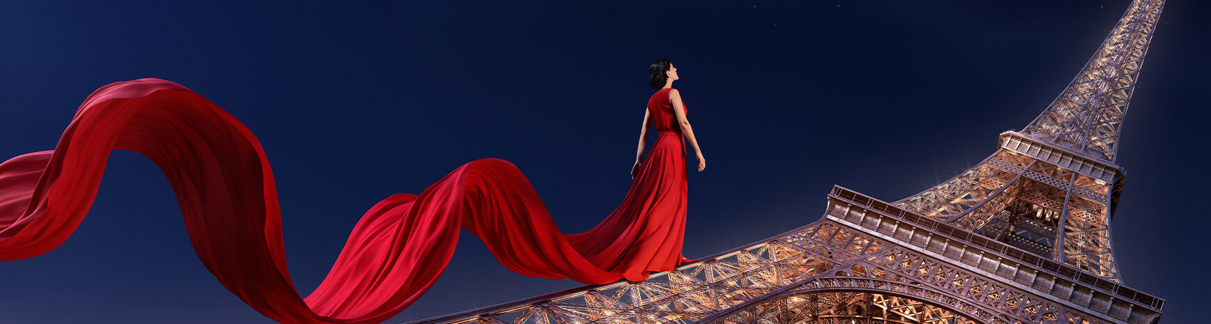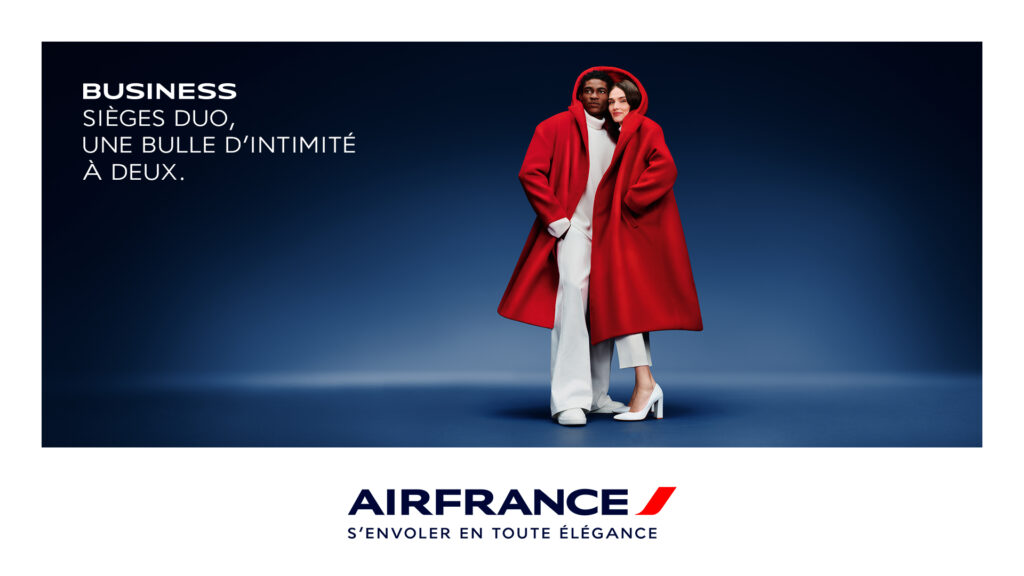 La campaña también destaca los colores emblemáticos de Air France —azul profundo, blanco luminoso y toques de rojo—, ahora aún más intensos.